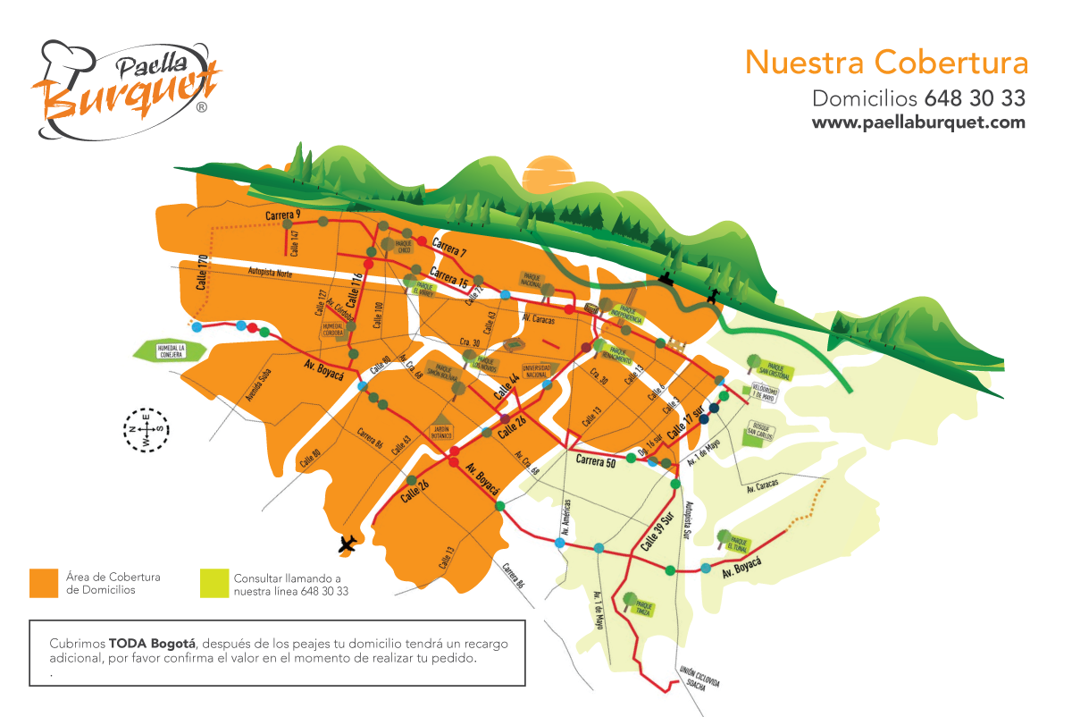 Pierna de pollo, ternera, costilla y lomo de cerdo, chorizo español y coctel, media colita de langosta cada cinco (5) porciones, pulpo, doble langostino grande, mejillones, filete de róbalo, una (1) gamba cada dos (2) porciones (en temporada), camarón, calamar, almeja en concha, alcachofa, aceitunas, pimentón, habichuela, arveja y azafrán.